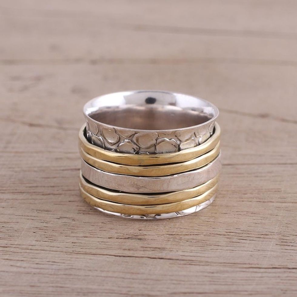 Handmade Sterling Silver and Brass Spinner Ring from India 'Five Rotations' Item ID: 2669925025