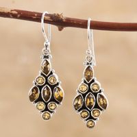 Handmade Sterling Silver and Citrine Dangle Earrings 'Golden Tower' Item ID: 2671787542