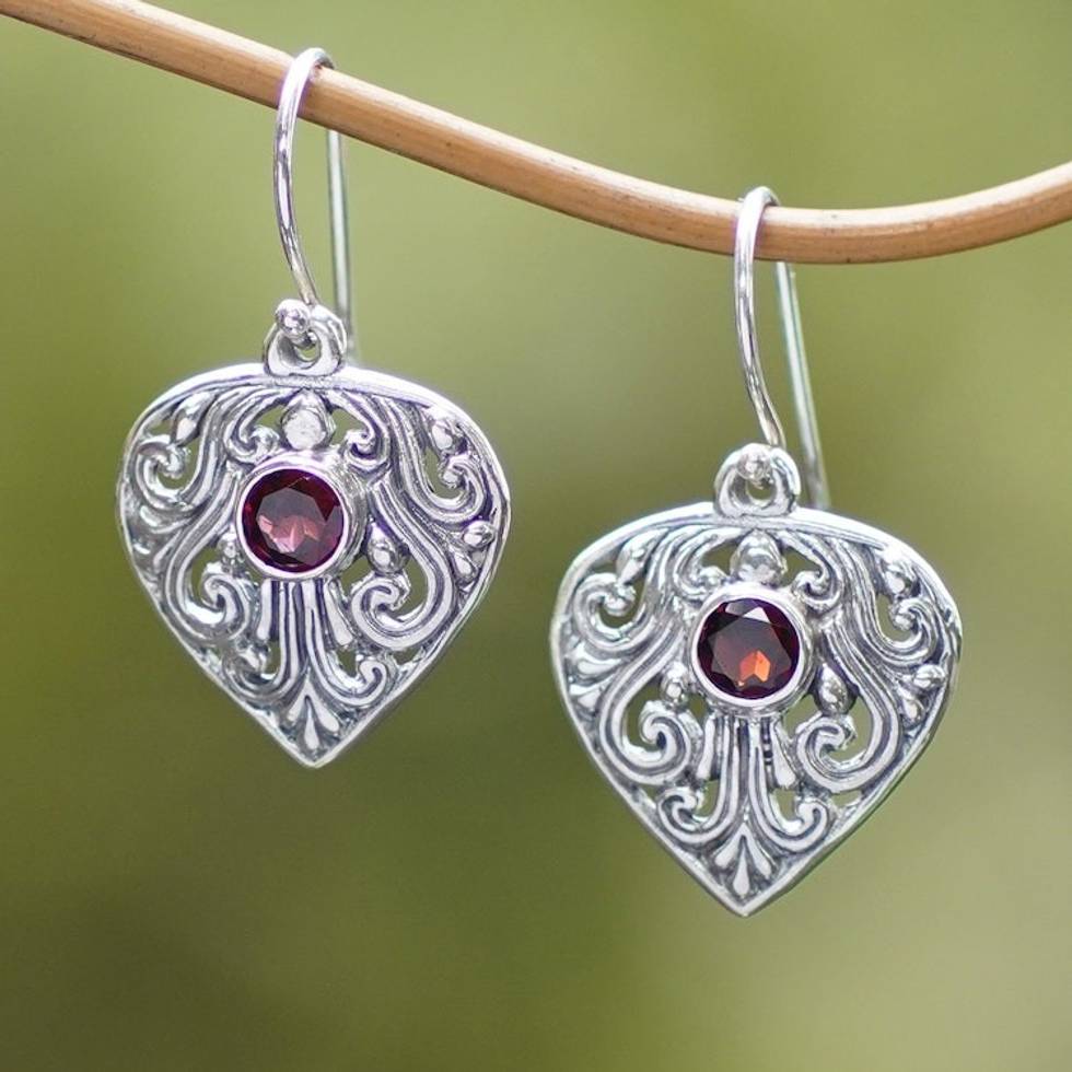 Handmade Sterling Silver and Garnet Dangle Earrings 'Crest of Vines' Item ID: 2671734430