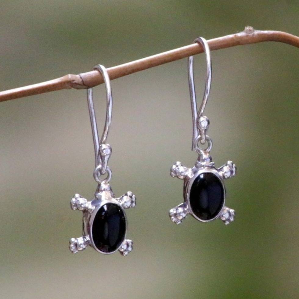 Handmade Sterling Silver and Onyx Dangle Earrings 'Turtle Trails' Item ID: 2671698776