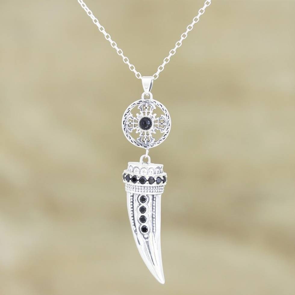 Handmade Sterling Silver and Onyx Pendant Necklace 'Tusk' Item ID: 2671789854