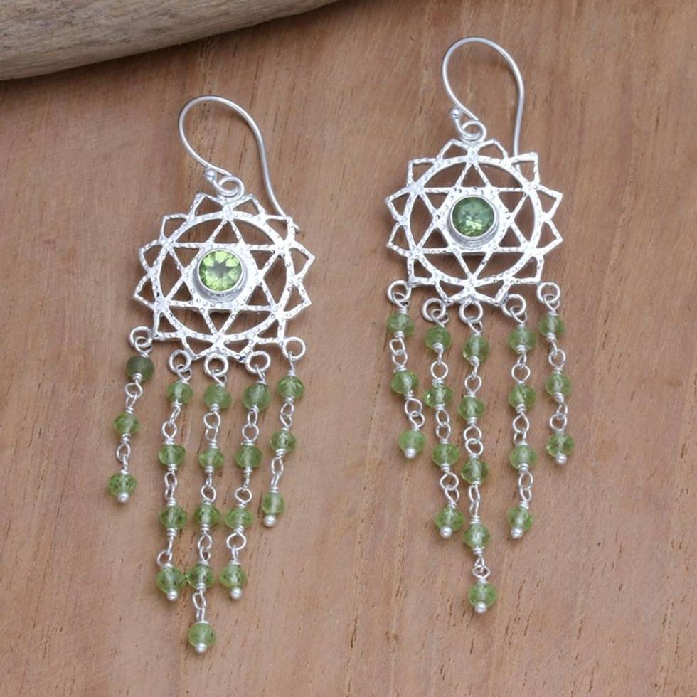 Handmade Sterling Silver and Peridot Dangle Earrings 'Renewed Heart' Item ID: 2671748260