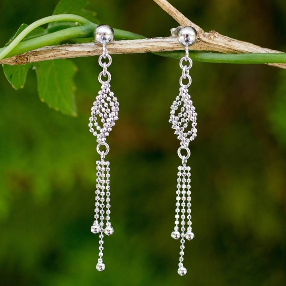 Handmade Sterling Silver Ball Chain Waterfall Earrings 'Silver Flume' Item ID: 2671802476