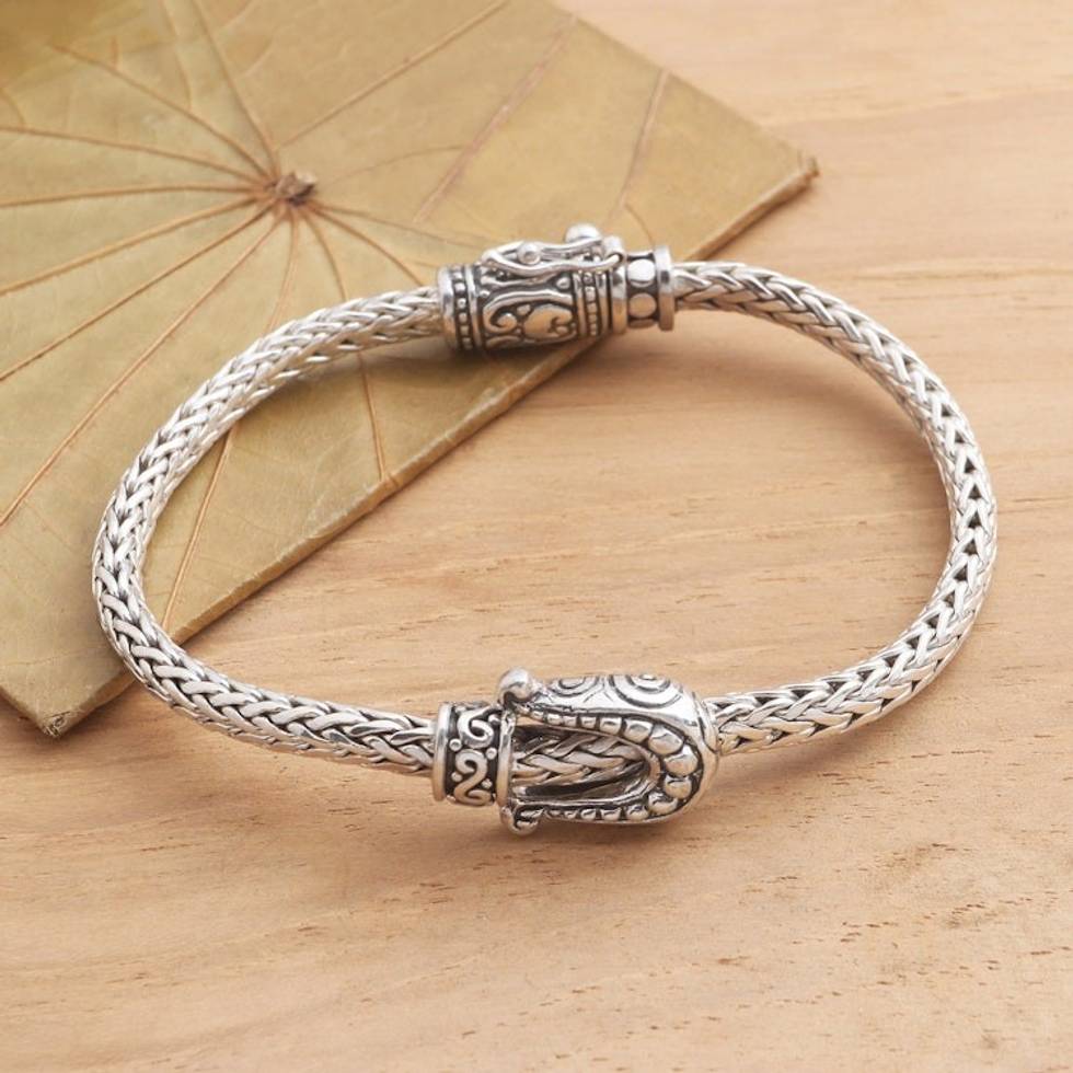 Handmade Sterling Silver Braided Buckle Bracelet from Bali 'Buckle Down' Item ID: 2671737747