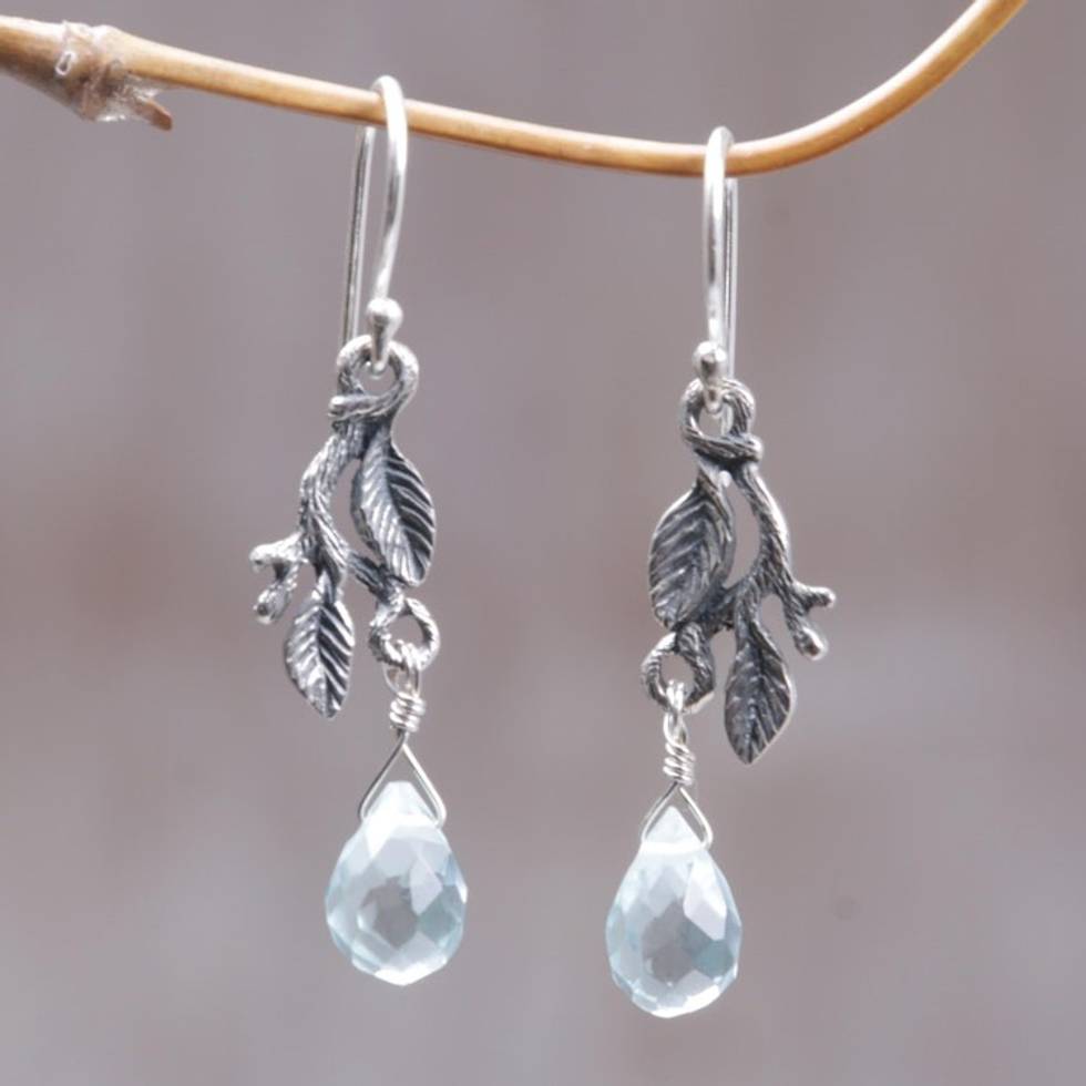 Handmade Sterling Silver Dangle Earrings 'Blue Rainforest' Item ID: 2669923263