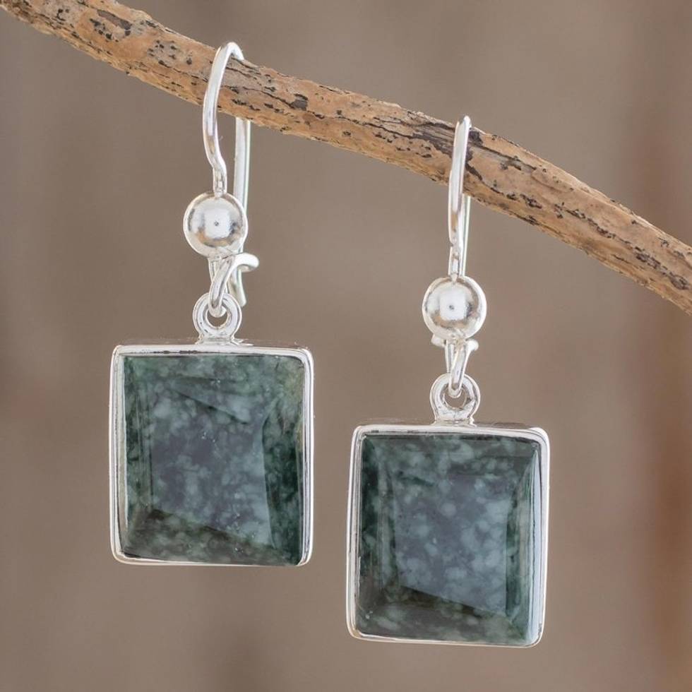 Handmade Sterling Silver Dangle Jade Earrings 'Love Immortal' Item ID: 2671777628