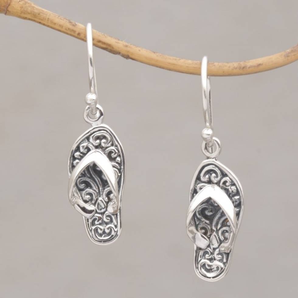 Handmade Sterling Silver Dangle Sandal Earrings from Bali 'Celuk Sandal' Item ID: 2669920587
