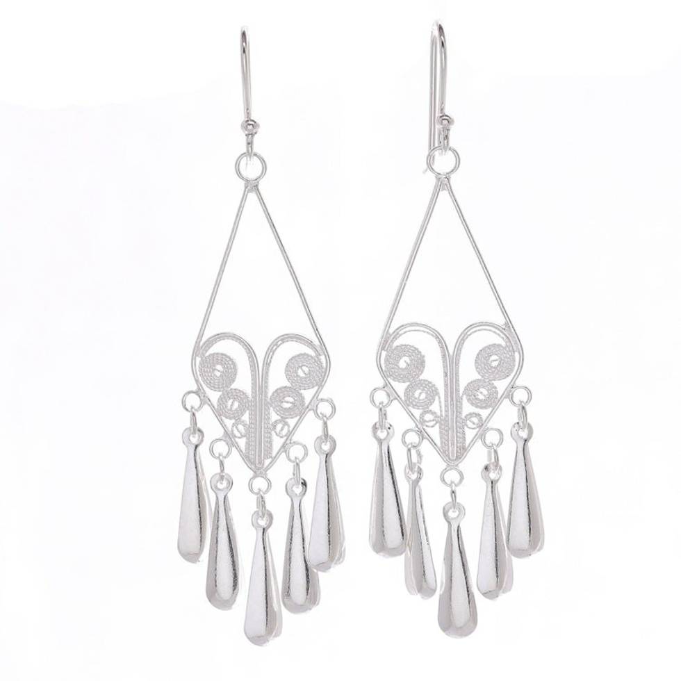 Handmade Sterling Silver Filigree Chandelier Earrings 'Diamond Fountains' Item ID: 2669925939
