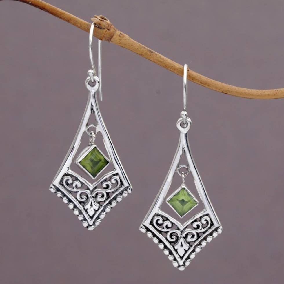 Handmade Sterling Silver Green Peridot Dangle Earrings 'Gianyar Dangle' Item ID: 2669920990