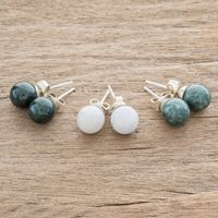 Handmade Sterling Silver Jade Stud Earrings Set of 3 'Maya Moons' Item ID: 2669923706