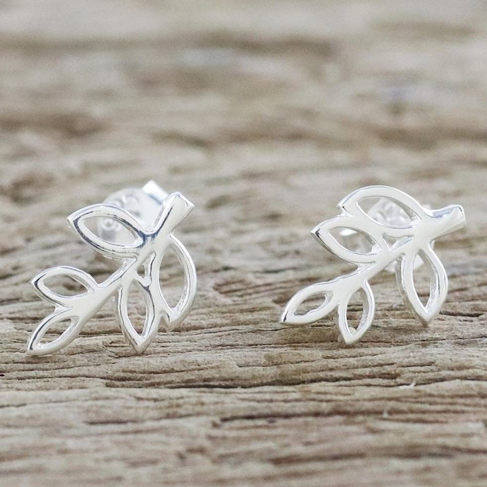 Handmade Sterling Silver Leaf Drop Earrings from Thailand 'Leaves of Spring' Item ID: 2671801244