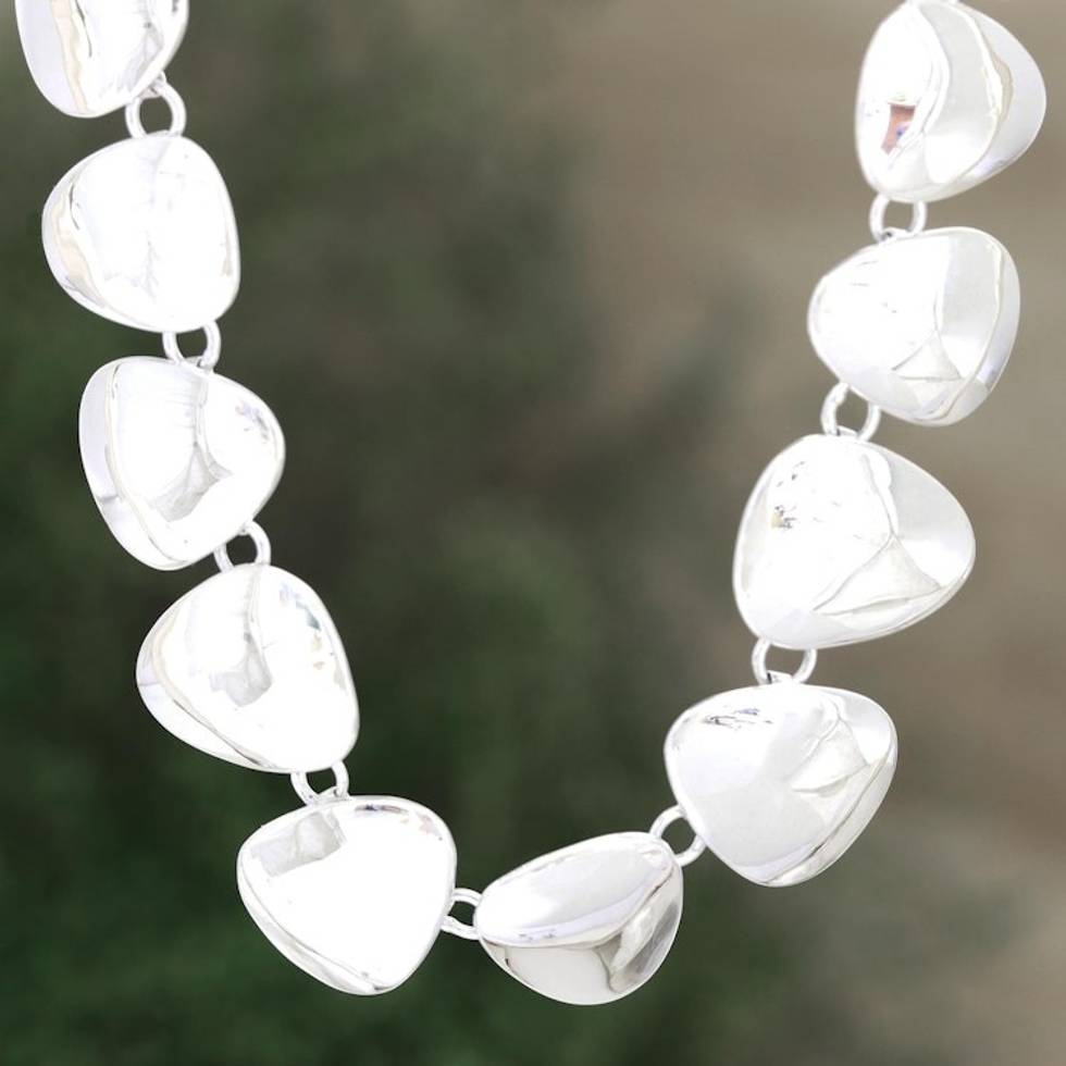 Handmade Sterling Silver Link Necklace from India 'Sparkling Triangles' Item ID: 2671789137