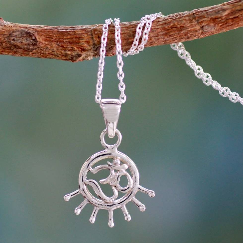 Handmade Sterling Silver Om Necklace 'Flames of Faith' Item ID: 2669955392