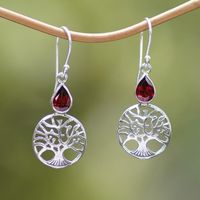 Handmade Sterling Silver Peach Tree Earrings with Garnet 'Peach Tree' Item ID: 2671734265