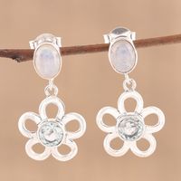Handmade Sterling Silver Rainbow Moonstone Topaz Earrings 'Azure Flower' Item ID: 2671790289