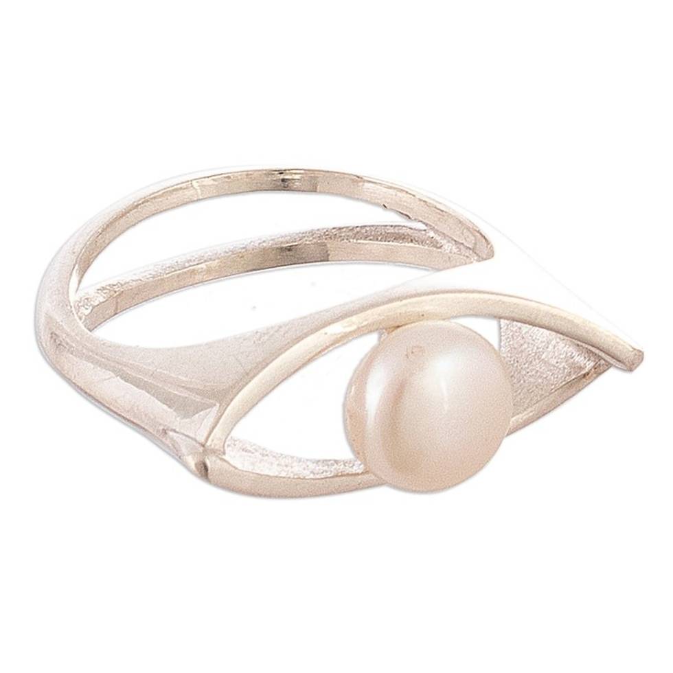 Handmade Sterling Silver Single Stone Ring with White Pearl 'Pearly Offering' Item ID: 2671697778