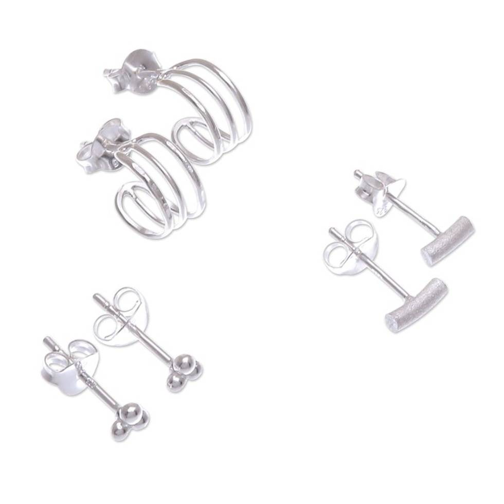 Handmade Sterling Silver Stud Earrings Set of 3 'Every Day Trio' Item ID: 2671800148