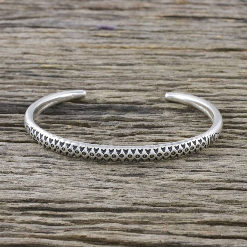 Handmade Sterling Silver Thai Hill Tribe Cuff Bracelet 'Hill Tribe Signature' Item ID: 2671801206