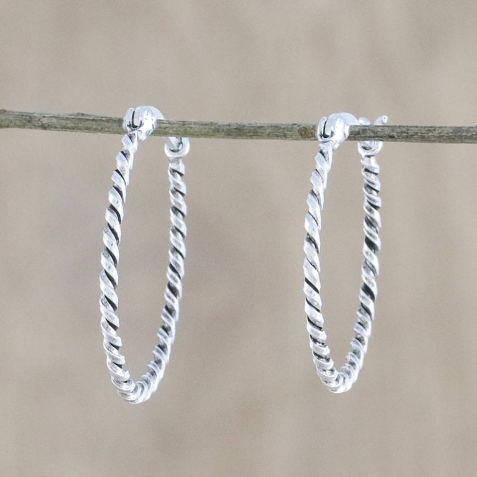 Handmade Sterling Silver Twisted Hoop Earrings from Thailand 'Spiral Onwards' Item ID: 2669930471