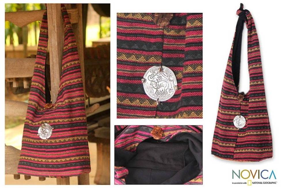 Handmade Striped Cotton Shoulder Bag 'Antique North' Item ID: 2671803134