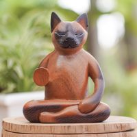 Handmade Suar Wood Cat Statuette from Bali 'Cat Kindness' Item ID: 2671747169