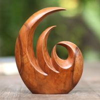 HandMade Suar Wood Flame Statuette 'Triple Flame' Item ID: 2671745144