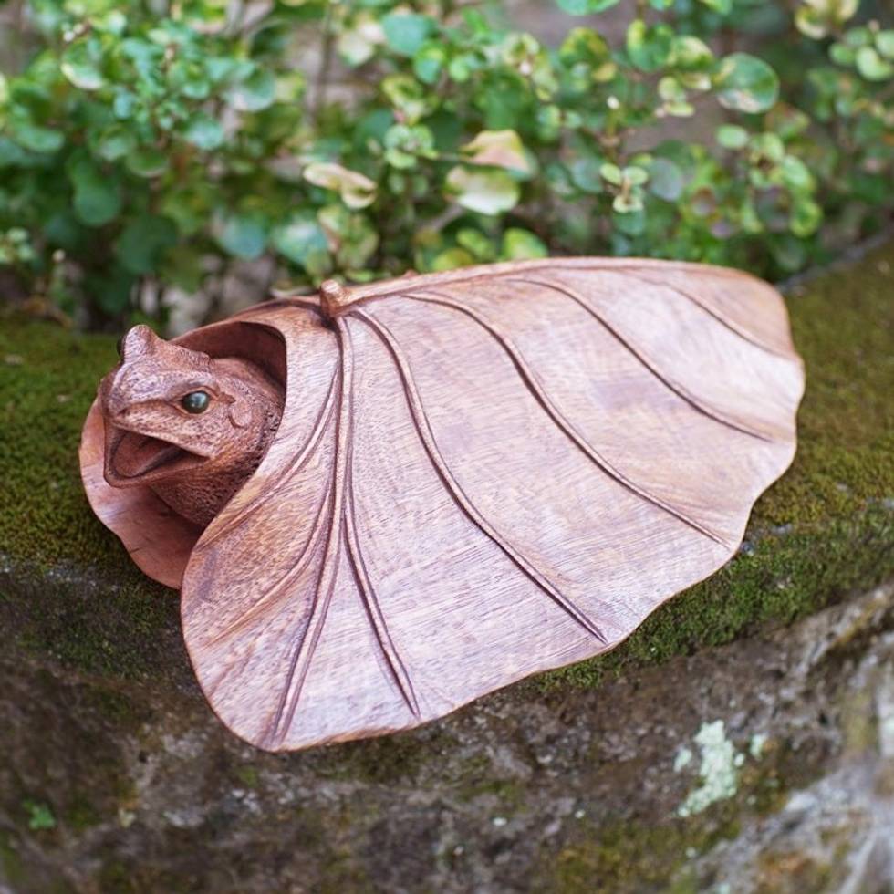 Handmade Suar Wood Frog Sculpture 'Chilly Frog' Item ID: 2671745546