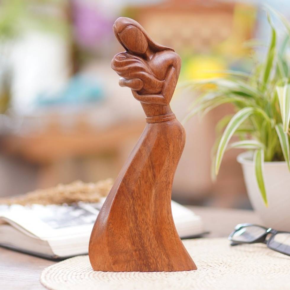 Handmade Suar Wood Mother and Baby Statuette 'Baby Boom' Item ID: 2669891832