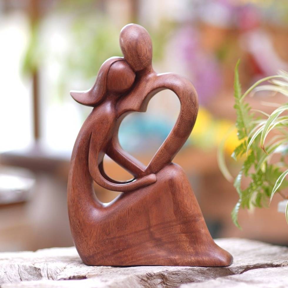 Handmade Suar Wood Statuette with Romantic Motif 'Embrace the Feeling' Item ID: 2671748653