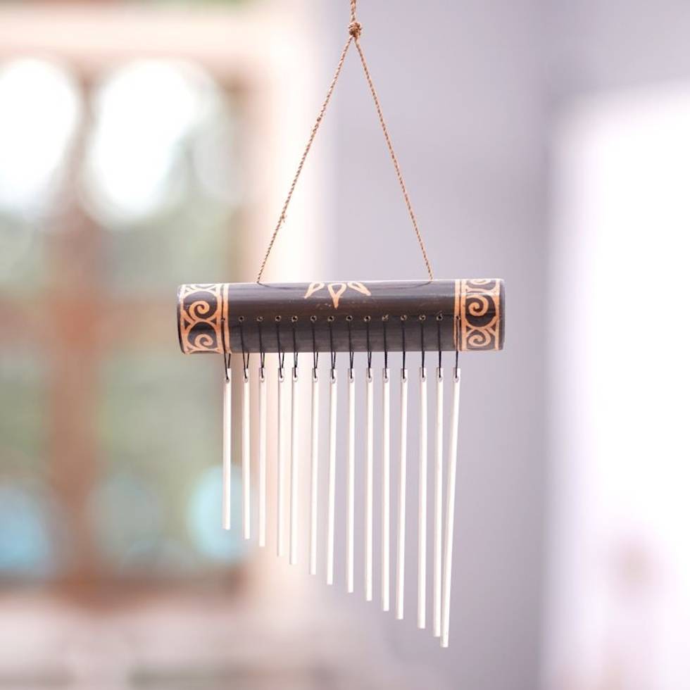 I made this purchase for myself. I love the carvings on the bamboo, the chimes are equally placed. The chimes make a faint tinkling, I've hung it over my kitchen sink window so I can look at the beauty and sound always.It was wrapped in many pieces of paper as to keep it safe without harm to it. It came with a note on a card with a photo of a glimpse of a unique destination in Indonesia. This ar... read more