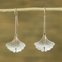 Handmade Taxco Sterling Silver Drop Earrings from Mexico 'Textured Leaves' Item ID: 2669931608