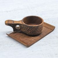 Handmade Teak Wood Cup and Saucer in Dark Brown 'Natural Blend in Dark Brown' Item ID: 2671798670