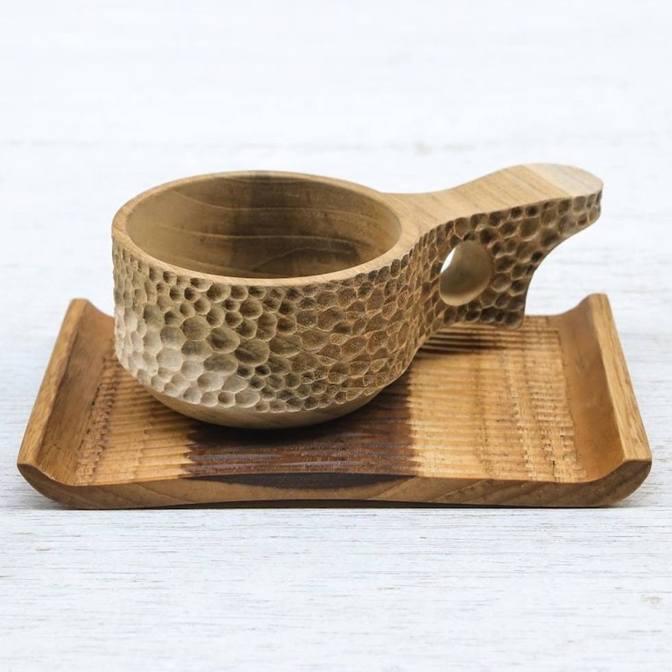 Handmade Teak Wood Cup and Saucer in Light Brown 'Natural Blend in Light Brown' Item ID: 2671798976