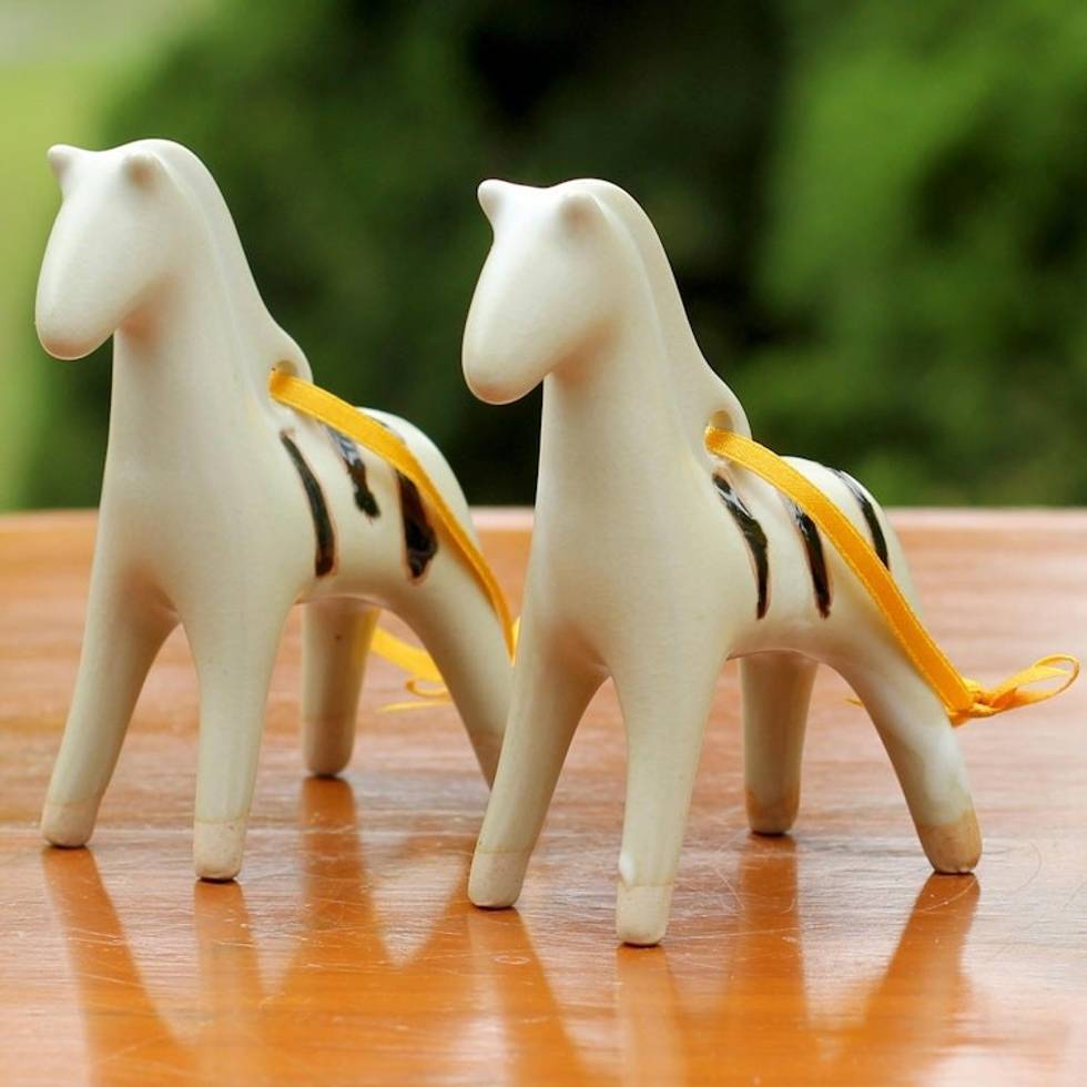 Handmade Thai Celadon Ceramic Horse Ornaments Pair 'Poised Pony' Item ID: 2671802165