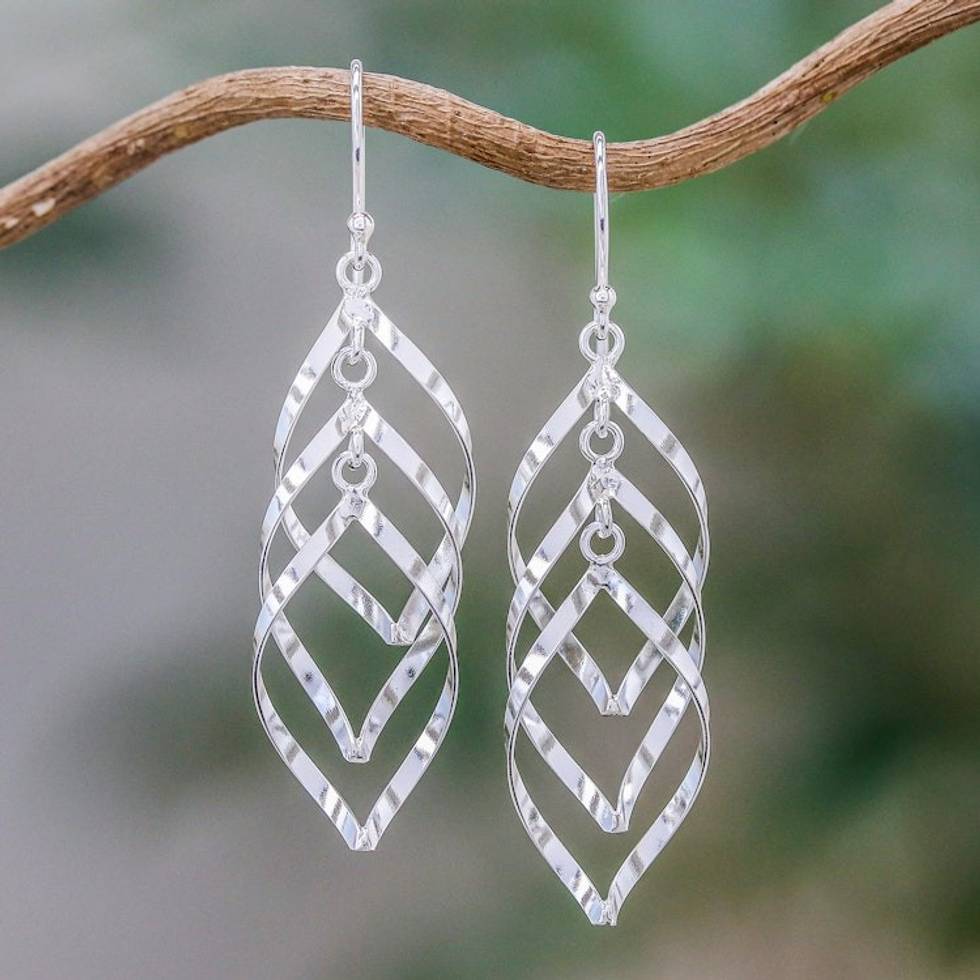 Handmade Thai Sterling Silver Dangle Earrings 'Leaf Cluster' Item ID: 2669925784