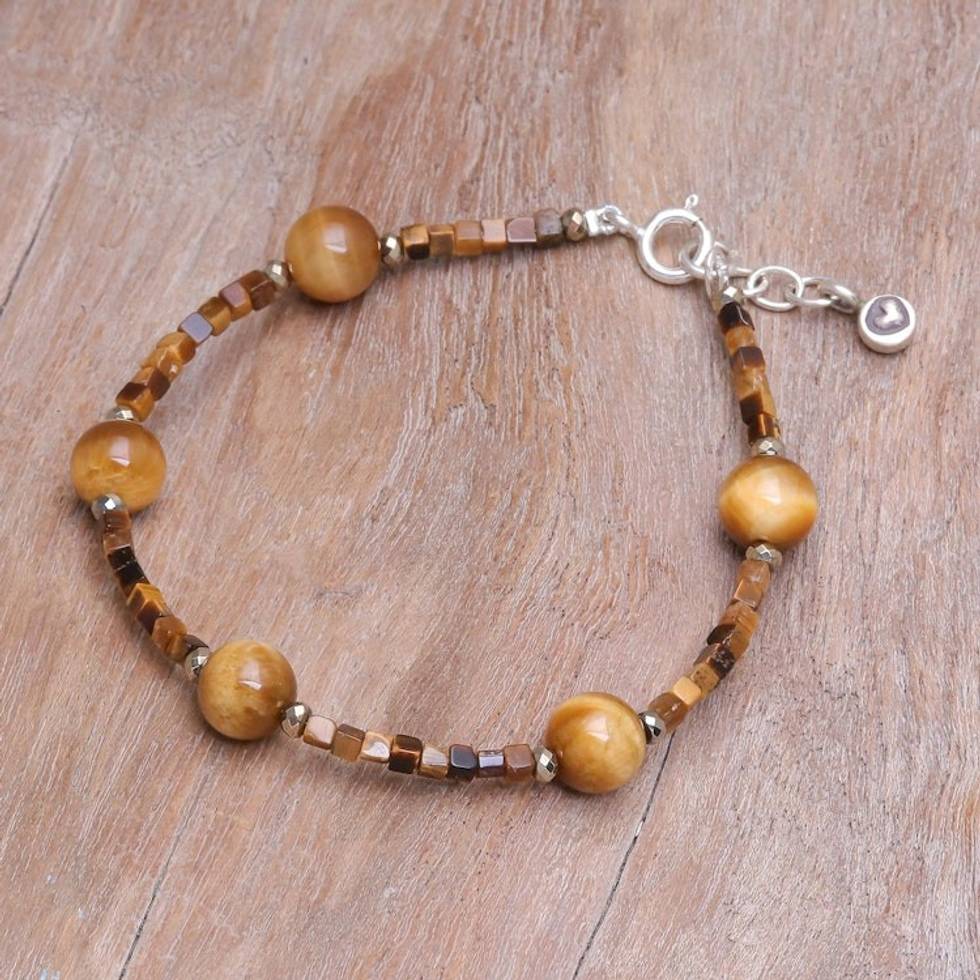 Handmade Tiger's Eye and Hematite Beaded Bracelet 'Mental Clarity' Item ID: 2671800292