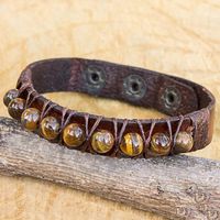 Handmade Tiger's Eye and Leather Band Bracelet from Thailand 'Rock Walk' Item ID: 2671801949