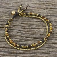 Handmade Tiger's Eye Brass Beaded Bracelet with Loop Closure 'Valley of Amber' Item ID: 2669928632