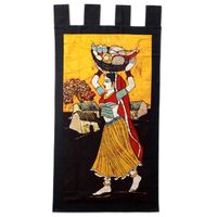 Handmade Traditional Batik Cotton Wall Hanging from India 'Fresh Vegetable Vendor' Item ID: 2671793233