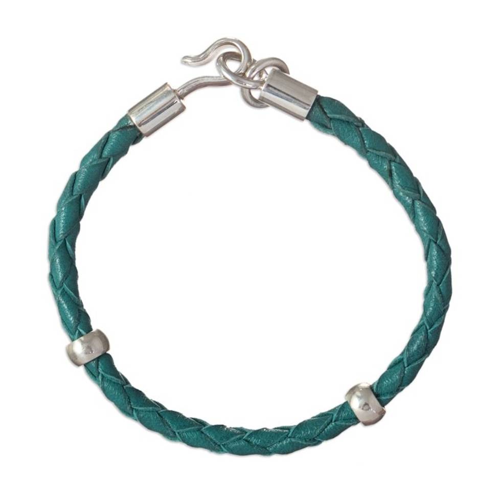 Handmade Turquoise Leather Braided Bracelet with Silver 925 'Bold Turquoise' Item ID: 2671691359