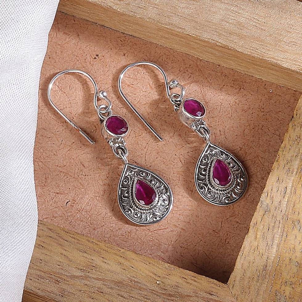 Handmade Two-Carat Ruby and Sterling Silver Dangle Earrings 'Capricious Tears' Item ID: 2671622494