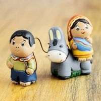 Handmade Two-Piece Set of Ceramic Mary and Joseph Figurines 'Flight to Egypt' Item ID: 2676641724