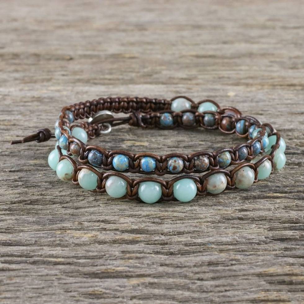 Handmade Unisex Beaded Macrame Wrap Bracelet from Thailand 'Oceanic Wanderer' Item ID: 2669926158