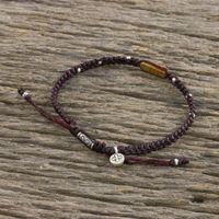 Handmade Waxed Cord Jasper Hill Tribe Silver Bracelet 'Earth Saver' Item ID: 2669927812