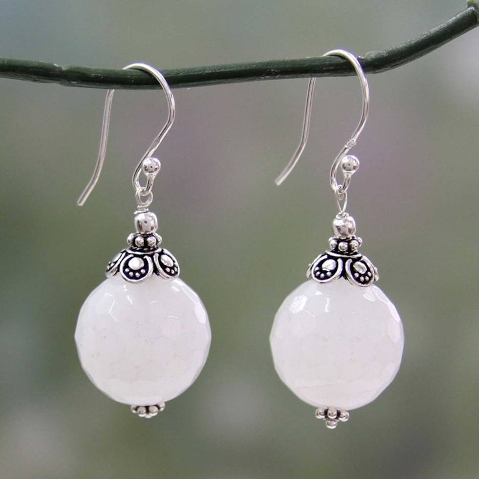Handmade White Chalcedony and Silver Earrings from India 'Glorious White' Item ID: 2671793452