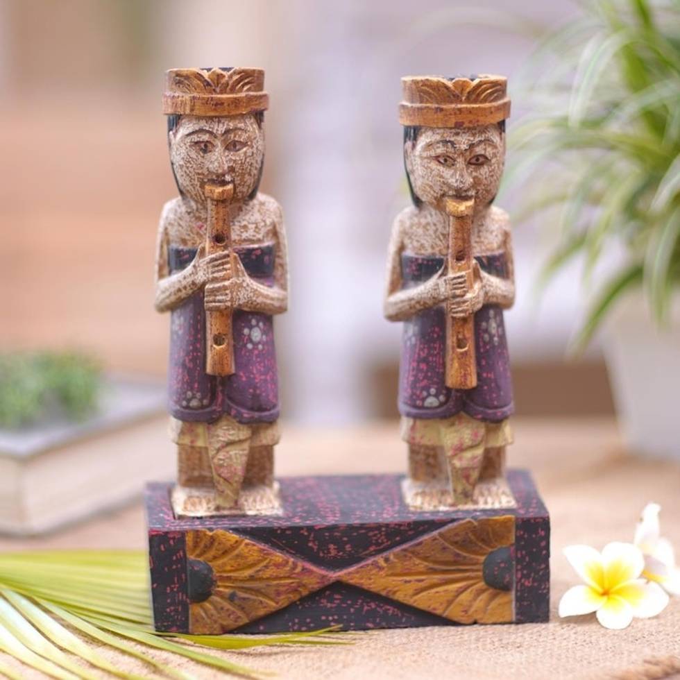 Handmade Wood Statuette with Music Motif 'Balinese Rhythm' Item ID: 2671747513