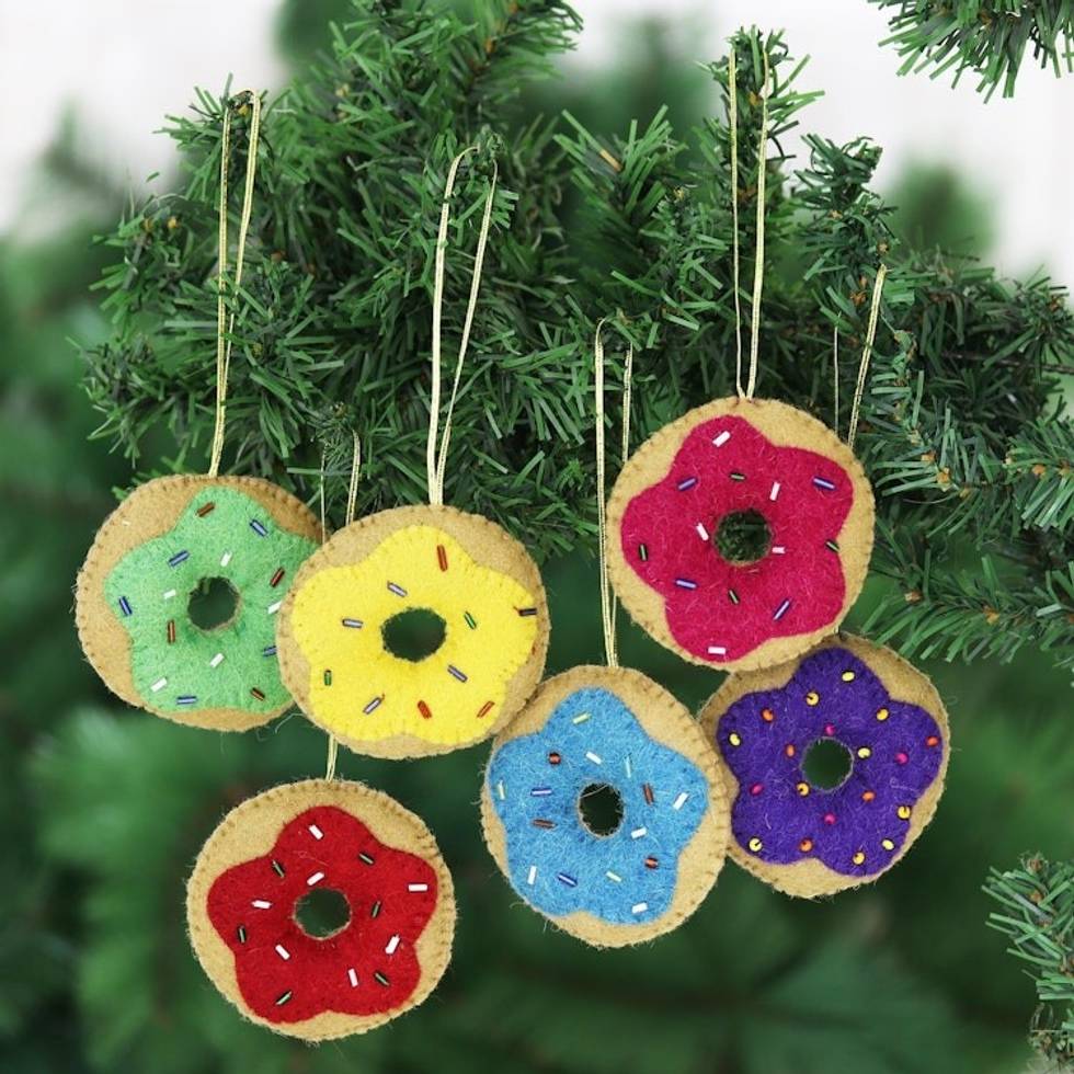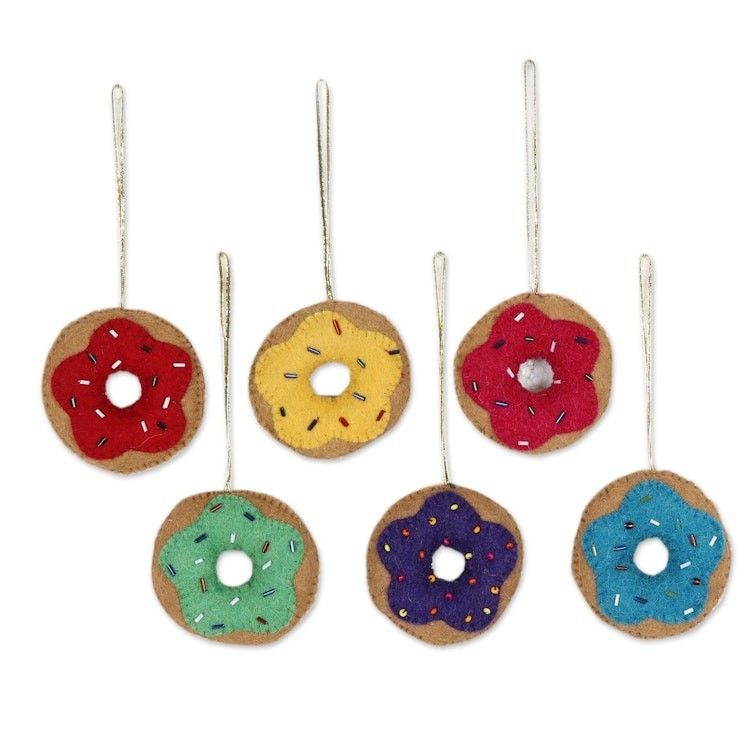Handmade Wool Felt Doughnut Ornaments Set of 6 'Sweet Sprinkles' Item ID: 2671789404