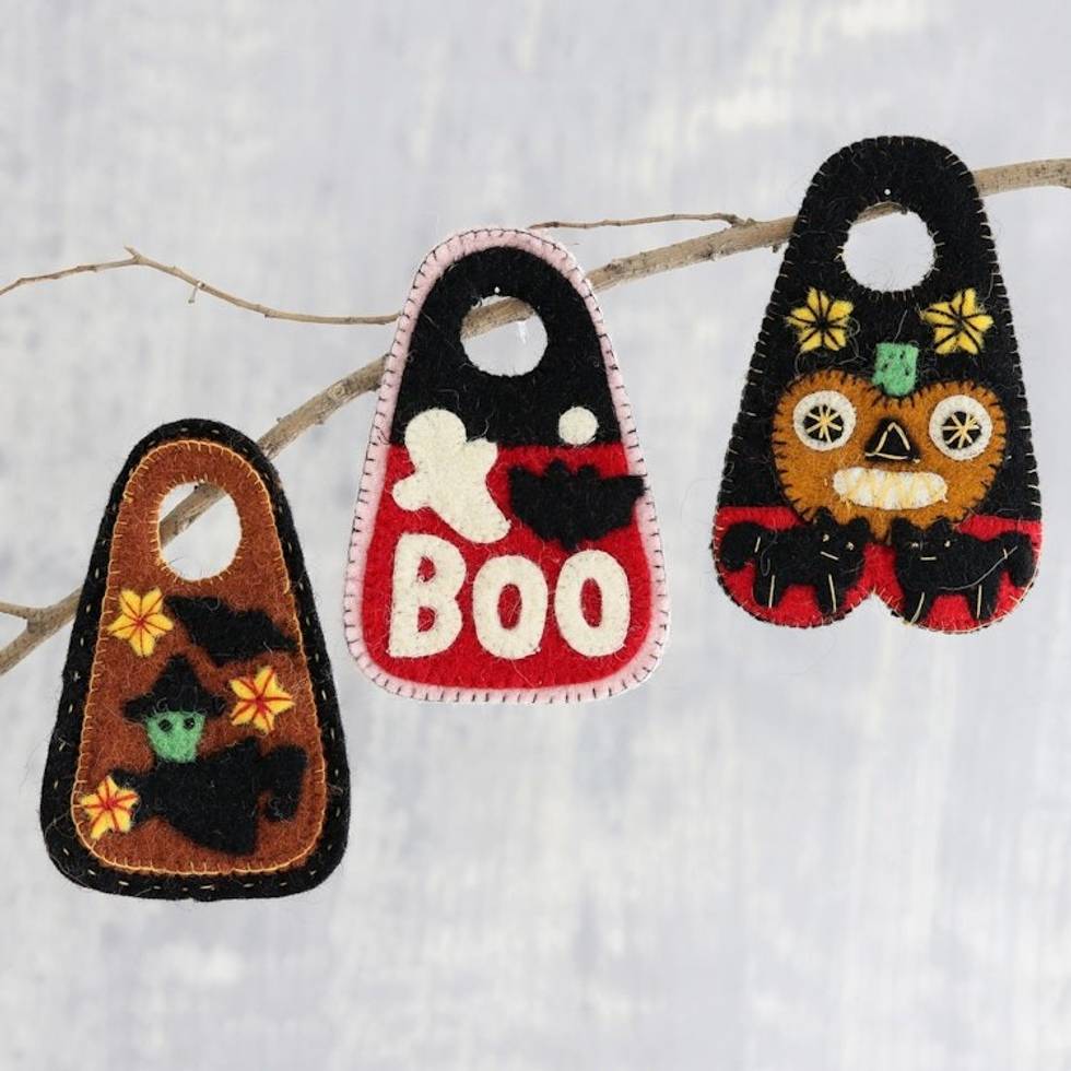 Handmade Wool Felt Halloween Door Hangers Set of 3 'Halloween Greetings' Item ID: 2671789812