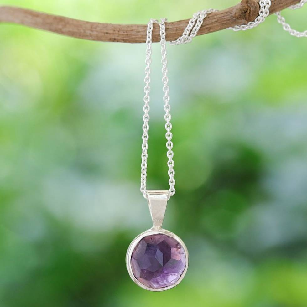 Handmand Silver and Amethyst Pendant Necklace from Thailand 'Amethyst Heavens' Item ID: 2671797218