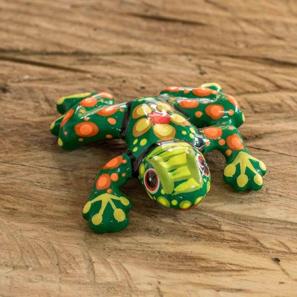 Handpainted Ceramic Figurine Frog and Floral Motif 'Green Harmony Frog' Item ID: 2669934791
